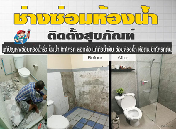 ติดตั้งสุขภัณฑ์ ซ่อมท่อน้ำรั่ว ซ่อมแซมพื้นห้องน้ำท่าอิฐ
