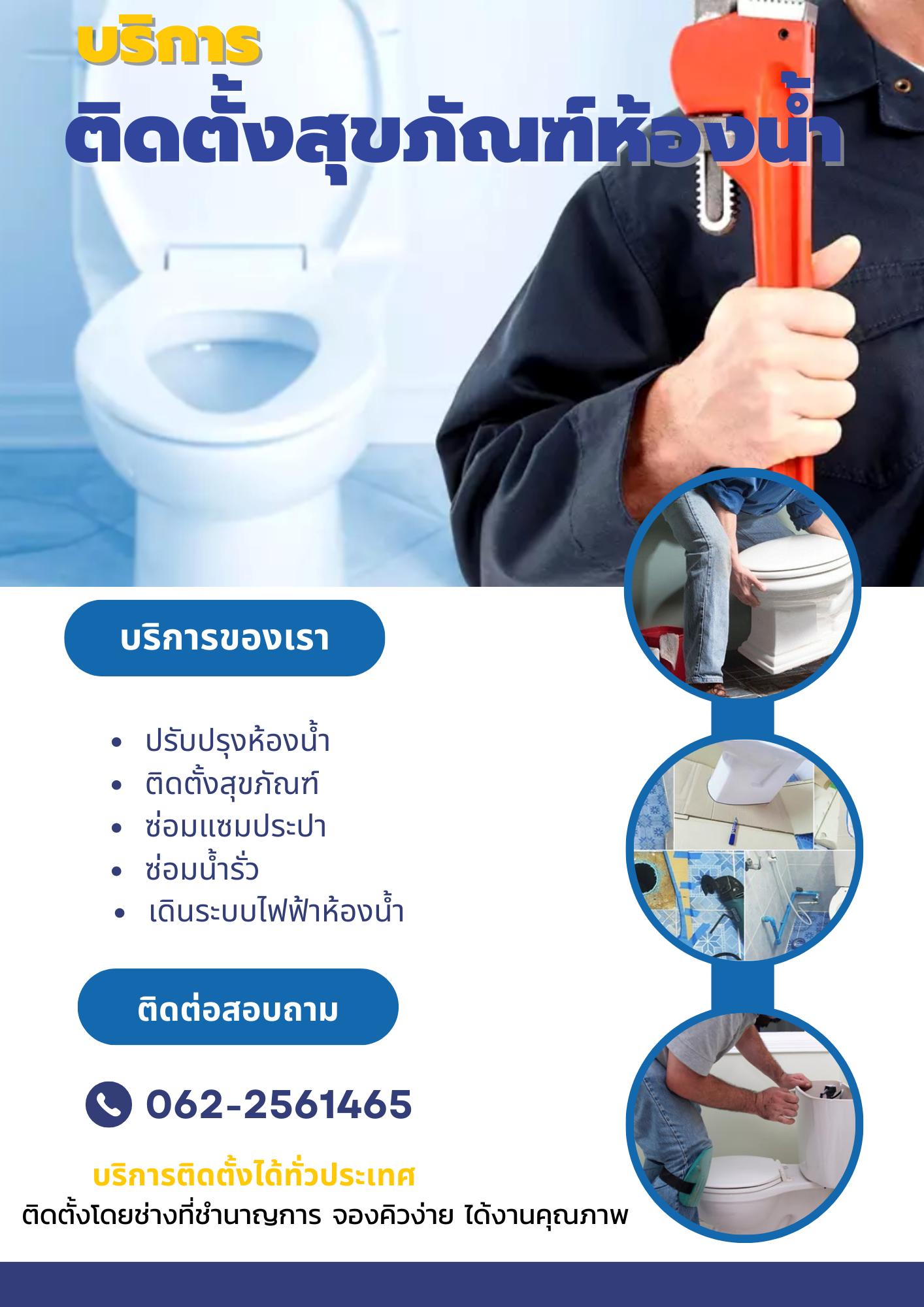 ติดตั้งสุขภัณฑ์ห้องน้ำปากเกร็ด ชักโครก ลูกลอย สายฉีดชำระ ติดตั้งอ่างอาบน้ำ ประปา ซ่อมน้ำรั่ว เดินระบบไฟฟ้า แก้ปัญหาส้วมตัน ชักโครกกดไม่ลง งานรื้อซ่อมแซมพื้นห้องน้ำ